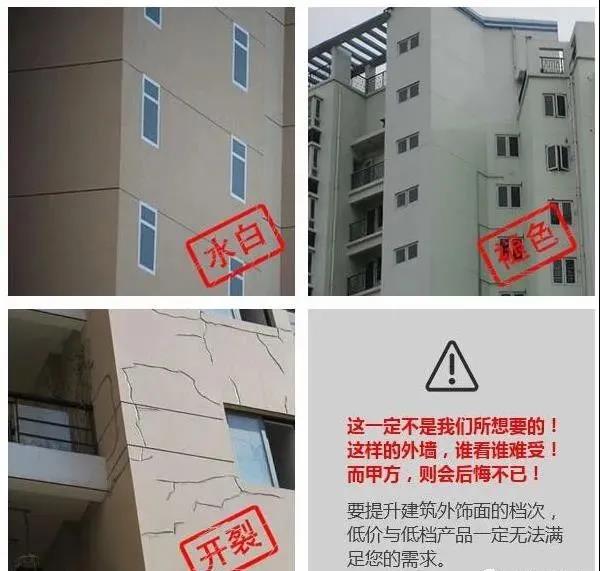 苯丙乳液,眾所周知,長時間泡水,苯丙乳液是百分之百發(fā)白的,夏天或許浸泡時間會長一些。純丙或硅丙,作用比苯丙好。但當(dāng)氣溫過低而施工又未干透時遇到寒冬加雨水夾攻,再好的配方真石漆也相同面對發(fā)白風(fēng)險。試驗標(biāo)明:在4℃以下的冰冷溫度下,選用較好的硅丙乳液做相同試驗,結(jié)果真石漆仍是發(fā)白。所以環(huán)境、氣候是真石漆發(fā)白的重要因素。